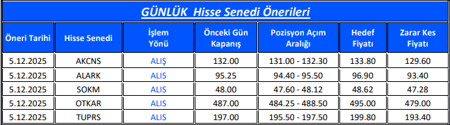➢ Önerilerin geçerlilik süresi raporda verilen tarihle sınırlıdır. Verilen tarih içinde hedef ve stop seviyesine ulaşmayan hisseler öneri bitiş tarihindeki kapanış fiyatından kapatılmış sayılır ve bunlar için ek bir bildirim yapılmaz.
