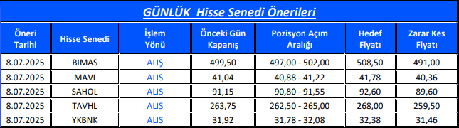 ➢ Önerilerin geçerlilik süresi raporda verilen tarihle sınırlıdır. Verilen tarih içinde hedef ve stop seviyesine ulaşmayan hisseler öneri bitiş tarihindeki kapanış fiyatından kapatılmış sayılır ve bunlar için ek bir bildirim yapılmaz.