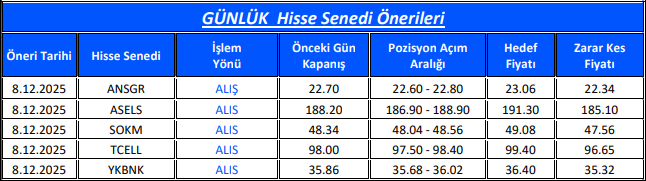 ➢ Önerilerin geçerlilik süresi raporda verilen tarihle sınırlıdır. Verilen tarih içinde hedef ve stop seviyesine ulaşmayan hisseler öneri bitiş tarihindeki kapanış fiyatından kapatılmış sayılır ve bunlar için ek bir bildirim yapılmaz.