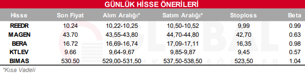 Bugün hareketli olmasını beklediğimiz hisseler: REEDR-MAGEN-BERA-KTLEV-BIMAS