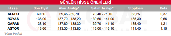 Bugün hareketli olmasını beklediğimiz hisseler: KLRHO-RGYAS-GARAN-ASTOR