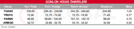 Bugün hareketli olmasını beklediğimiz hisseler: TOASO-TRGYO-PARSN-ARMGD