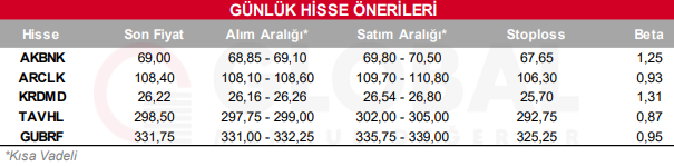 Bugün hareketli olmasını beklediğimiz hisseler: AKBNK, ARCLK, KRDMD, TAVHL, GUBRF