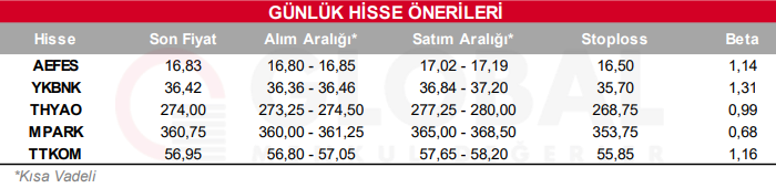 Bugün hareketli olmasını beklediğimiz hisseler: AEFES, YKBNK, THYAO, MPARK, TTKOM