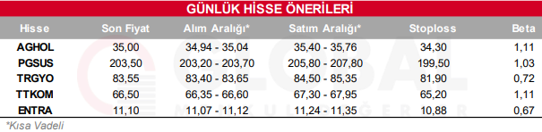 Gün içerisinde hareketli olmasını beklediğimiz hisseler;