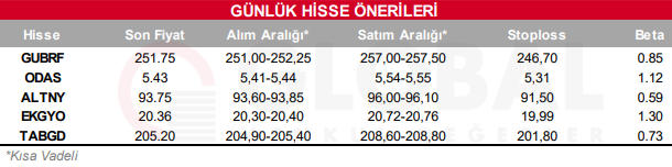 Bugün hareketli olmasını beklediğimiz hisseler: GUBRF-ODAS-ALTNY-EKGYO-TABGD