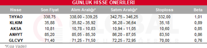 Bugün hareketli olmasını beklediğimiz hisseler: THYAO-KLKIM-AKSA-ANHYT-GLCVY