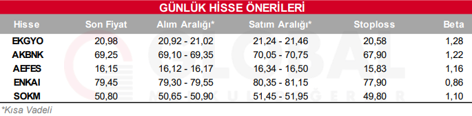 Bugün hareketli olmasını beklediğimiz hisseler: EKGYO, AKBNK, AEFES, ENKAI, SOKM