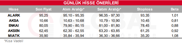 Bugün hareketli olmasını beklediğimiz hisseler: ALARK, AKSA, ENKAI, AKSEN, MIATK