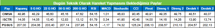 Bugün Teknik Olarak Hareket Yapmasını Beklediğimiz Paylar
