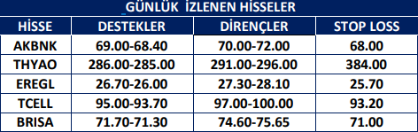 Endekste çıkış hareketi sürüyor. İlk destekler 10.130-10.100 olarak bulunurken bu seviyeler günlük işlemler için önemli. Sonraki destekler 10.000-9.950 seviyelerinde bulunuyor. İlk dirençler ise 10.200- 10.250 seviyelerinde. Bu seviyenin üzerinde sonraki dirençler 10.310-10.380 noktalarında. Endekste çıkışın devamı beklenebilir. Ancak direnç seviyelerinde satışlar görülebilir. Güne alıcılı başlanabilir.