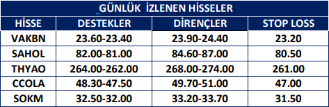 Endekste tepki çıkışı görüldü. İlk destekler 9.300-9.290 olarak bulunurken bu seviyeler günlük işlemler için önemli. Sonraki destekler 9.220 ve 9.080 seviyelerinde bulunuyor. İlk dirençler ise 9.460 ve 9.500 seviyelerinde. Sonraki dirençler 9.680-9.770 seviyelerinde görülüyor. Endekste tepki çıkışının devamı beklenmekle birlikte direnç seviyelerinde satışlar görülebilir. Güne yatay başlanabilir.