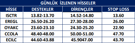 Endekste düşüş sürüyor. İlk destekler 10.100 ve 10.000-9.950 olarak bulunurken bu seviyeler günlük işlemler için önemli. Sonraki destekler 9.800-9.750 seviyelerinde bulunuyor. İlk dirençler ise 10.190 ve 10.310 seviyelerinde. Bu seviyelerin üzerinde sonraki dirençler 10.400-10.410 noktalarında. Endekste tepki alım denemeleri görülebilir. Ancak direnç seviyelerinde satışla karşılaşma olasılığı yüksek.
