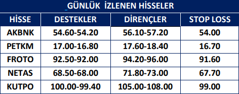 Günlük İzlenen Hisseler