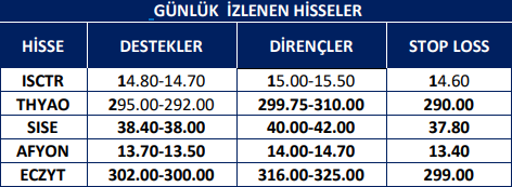 Endekste satış denemelerine rağmen çıkış hareketi sürüyor. İlk destekler 12.700-12.670 seviyelerinde. Bu seviyeler günlük işlemler için önemli. Sonraki destekler 12.580 ve 12.500 olarak görülüyor. İlk dirençler ise 12.850-12.915 noktalarında. Bu seviyelerin üzerinde sonraki dirençler 12.950-13.000 ve 13.100 olarak görülüyor. Endekste çıkış hareketinin devamı beklenmekle birlikte direnç noktalarında satış denemeleri görülebilir. Güne alıcılı başlanabilir.