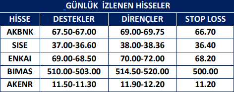 Borsada yükseliş hareketi sürüyor. İlk destekler 10.625 ve 10.570 seviyelerinde bulunuyor. Bu seviyeler günlük işlemlerde öne çıkabilir. Sonraki destekler 10.500 ve 10.400 seviyelerinde. İlk dirençler 10.700 ve 10.750-10.780 noktalarında. Sonraki dirençler ise 10.900-10.950 seviyelerinde bulunuyor. Endekste çıkışın devamı beklenebilir. Ancak direnç noktalarında satışlar görülebilir. Güne alıcılı başlanabilir.