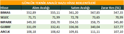 Günlük Teknik Analiz Bazlı Hisse Beklentileri