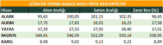 Günlük Teknik Analiz Bazlı Hisse Beklentileri