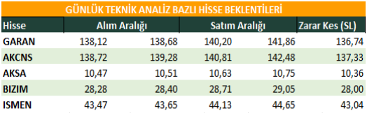 Günlük Teknik Analiz Bazlı Hisse Beklentileri
