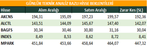 Günlük Teknik Analiz Bazlı Hisse Beklentileri