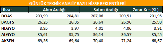 Günlük Teknik Analiz Bazlı Hisse Beklentileri