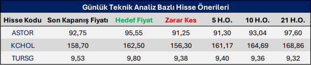 Günlük Teknik Analiz Bazlı Hisse Önerileri