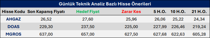 Günlük Teknik Analiz Bazlı Hisse Önerileri