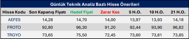 Günlük Teknik Analiz Bazlı Hisse Önerileri