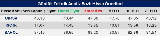 Günlük Teknik Analiz Bazlı Hisse Önerileri