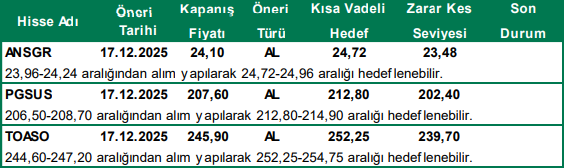 Günlük Hisse Önerileri