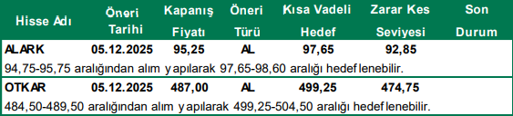 Günlük Hisse Önerileri