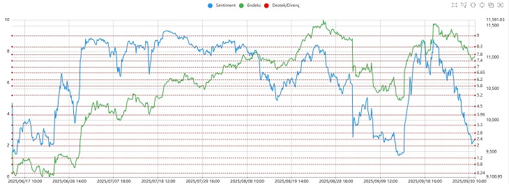 Sentiment göstergesi 2.00–2.40 bandında tutunmayı sürdürüyor. Bu bölge, piyasanın yön arayışında kritik bir destek alanı olarak öne çıkıyor. Ancak bu seviyelerin altına inilmesi hâlinde satışların sertleşmesi ve volatilitenin artması muhtemel. Bu nedenle mevcut pozisyonlarda temkinli davranmak ve riskleri sınırlı tutmakta fayda var.