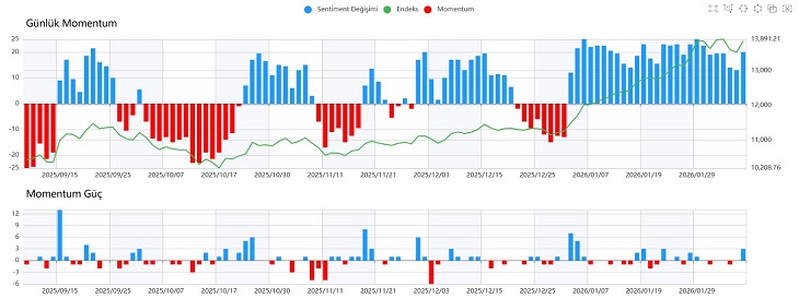Sentiment tarafında da dikkat çekici bir güçlenme yaşandı. Gün içindeki alımların etkisiyle 7.40 direncine kadar yükseldik ve piyasa algısında toparlanmanın belirgin şekilde sürdüğünü gözlemledik.