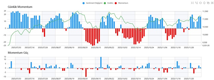 Bu olumlu tablo, yukarı yönlü momentumun korunması hâlinde endeksin 11.600 direnç bölgesine doğru hareket etme potansiyelini artırıyor. Önceki gün ilk 10 listesine giren ASELS hissesinde gelen güçlü yükseliş endeksi olumlu etkiledi.