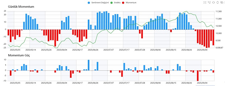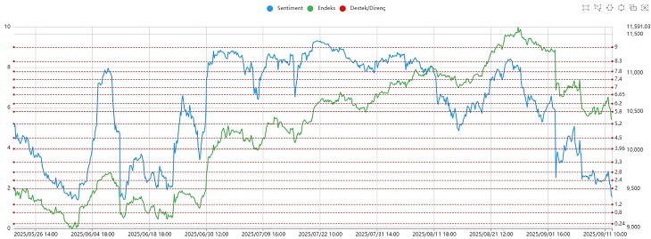 Sentiment göstergesinin 2.00–2.40 destek bandının altına inmesi, piyasada panik satışlarının devreye girdiğini ortaya koyuyor. Bu tablo, risk iştahının zayıf olduğunu ve temkinli pozisyonlanmanın ön plana çıkması gerektiğini gösteriyor. Bu aşamada risklerin sınırlı tutulması önem arz ediyor.