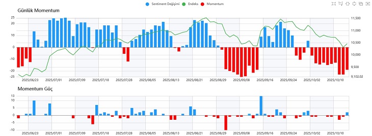 Yukarı yönlü denemelerde 3.30 bölgesi kritik bir eşik olmaya devam ediyor. Bu seviyeye doğru oluşacak hareketler, tepkinin gücü ve devamlılığı açısından belirleyici olacak. Günlük Momentum tarafında kısmi bir toparlanma olsa da göstergeler hala kırmızı bölgede. Saatlik Momentum’da ise kapanışa doğru daha pozitif sinyaller alınması dikkat çekiyor.