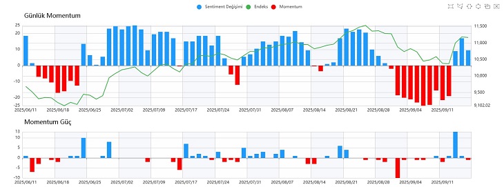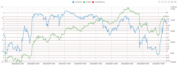 Sentiment tarafında 7,80–8,30 bandı kritik direnç konumunda. Bu seviyenin aşılması yükselişin devamı için önem taşıyor. Aksi halde alıcı momentumunun zayıflaması ve satış baskısının güçlenmesi gündeme gelebilir. Önümüzdeki günlerde bu bandın piyasanın yönü açısından belirleyici olacağını söylemek mümkün.