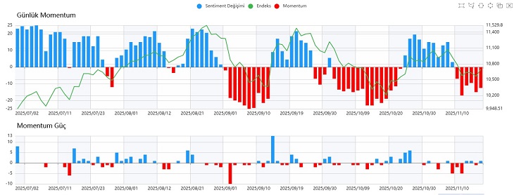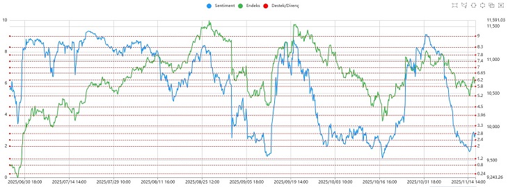 Sentiment göstergesi gün içinde 3.30 seviyesine doğru bir deneme yapsa da kapanış 2.40 desteğine yakın gerçekleşti. Sektör bazında iletişim ve ulaştırma zayıf kalırken, savunma, bilişim ve enerji grupları daha güçlü bir performans ortaya koydu. Kısa vadede 2.00–2.40 bandının korunması kritik önem taşırken, bu bölgenin altına sarkılması durumunda yeniden 1.20 desteğinin test edilme olasılığı gündemde kalıyor.
