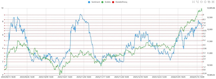Momentum göstergeleri tarafında ise Günlük Momentum pozitif bölgede kalmayı sürdürürken, Saatlik Momentum kapanışa doğru zayıflayarak negatif bölgeye geçti. Bu görünüm, kısa vadede temkinli bir seyrin öne çıktığına işaret ediyor.