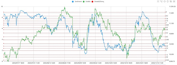 Sentiment göstergesi ise henüz net bir yön üretmiyor. 3.30 seviyesindeki kritik direnç aşılamadığı için alım iştahında tam bir güçlenmeden bahsetmek zor. Bu bölgenin üzerinde kalıcılık sağlanması durumunda momentum belirgin şekilde toparlanabilir; aksi halde mevcut bantta sıkışıklık ve zaman zaman satış baskısı gündemde kalmaya devam edecek.