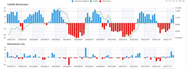 Momentum tarafında ise görünüm daha olumlu. Günlük Momentum pozitif seyrini korurken, saatlik Momentum mavi bölgede tutunarak kısa vadede güçlenmenin sürdüğünü gösteriyor.