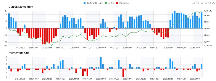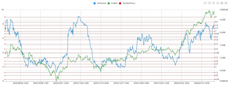 Buna karşın genele yayılan güçlü alımlar, endeksin pozitif bölgede tutunmasını sağladı. Sentiment 8’li seviyelere yükselirken, mevcut momentumun korunması halinde yukarı yönlü ivmenin artabileceğini değerlendiriyoruz.