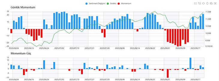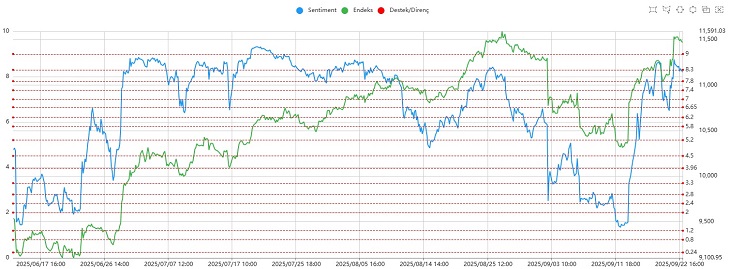 Sentiment tarafında ise 9 seviyesine ulaşamadan geri dönüş gerçekleşti ve kapanış 8,30 destek hattında yapıldı. 7,80–8,30 bandı korunduğu sürece pozitif görünümün devam etmesi bekleniyor. Daha derin geri çekilmelerde ise 6,65 seviyesi ana destek olarak takip edilmelidir.