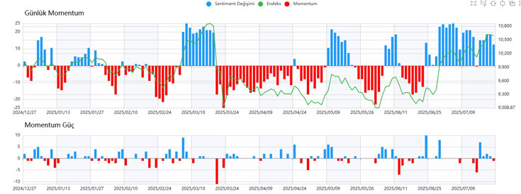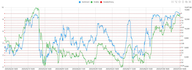 Kararsız ve dalgalı bir günü geride bıraktık. Faiz kararı öncesindeki son işlem gününde yatırımcılar temkinliydi ve endeks günü hafif negatif bir görünümle kapattı. Son iki gündür devam eden kar satışları ve belirsizlik, Sentiment Endeksi’ni 9.00 seviyesinin altına çekti. Ancak bu geri çekilmeye rağmen genel olarak güçlü duruşun korunduğunu söylemek mümkün.