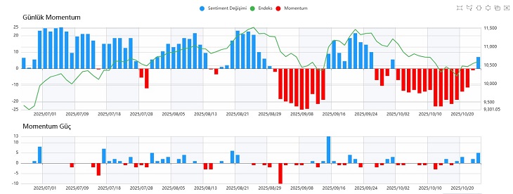 Günlük Momentum göstergesi toparlanma eğilimini sürdürüyor ve mavi bölgeye geçiş sağlandı. Saatlik Momentum tarafında ise kapanışa doğru bir miktar zayıflama görülse de genel olarak mavi bölgede kalınması pozitif görünümün korunduğuna işaret ediyor.