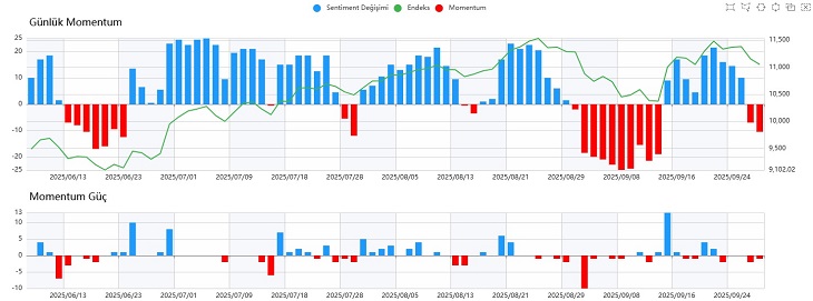 Sentiment tarafında geri çekilme 2.80 seviyesine kadar devam etti. Daha aşağıda yer alan 2.00–2.40 bandı ise kritik destek bölgesi konumunda. Bu bölge üzerinde kalıcılık sağlanması hâlinde tepki alımlarıyla bir toparlanma süreci başlayabilir. Ancak satış baskısının sürmesi durumunda aşağı yönlü hareketin sertleşme riski de göz önünde bulundurulmalı.