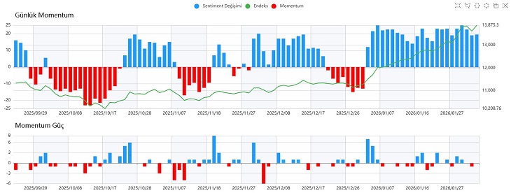 Sentiment tarafında 6.65 destek seviyesi üzerinde tutunma çabası devam ediyor. Bu seviyenin korunup korunamayacağı, önümüzdeki günlerde piyasanın yönü açısından belirleyici olacak. Günlük momentum pozitif seyrini korurken, saatlik momentum tarafında daha kararsız ve dalgalı bir görünüm izleniyor; bu da kısa vadede temkinli duruşun önemini artırıyor.