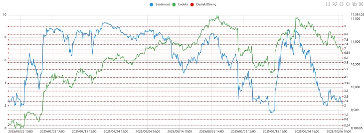 Sentiment göstergesi 2.00–2.40 bandında tutunmaya çalışıyor. Bu bölgelerden kısa vadeli tepki yükselişleri görülebilse de, ana direnç seviyeleri aşılmadıkça bu hareketlerin kalıcı olma ihtimali düşük görünüyor.