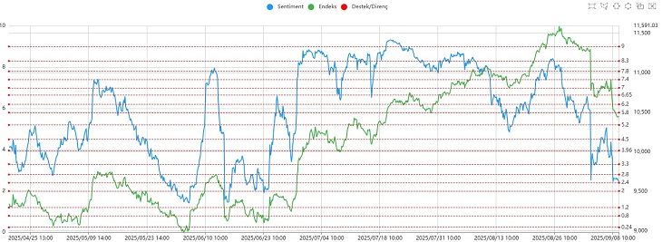 Siyasi belirsizliklerin yarattığı karamsar hava bugün de devam ederken, satış baskısı piyasalarda bozulmayı artırıyor. Sentiment göstergesi 2.40 seviyesine kadar geriledi. Zayıf bir görünüm söz konusu olsa da, bu seviye kritik bir karar noktası olarak öne çıkıyor ve olası tepki ihtimali masada.