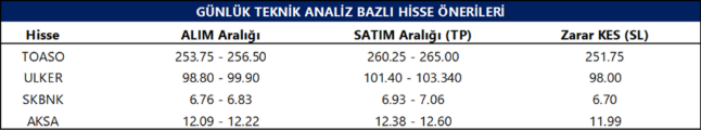 Günlük Teknik Analiz Bazlı Hisse Önerileri